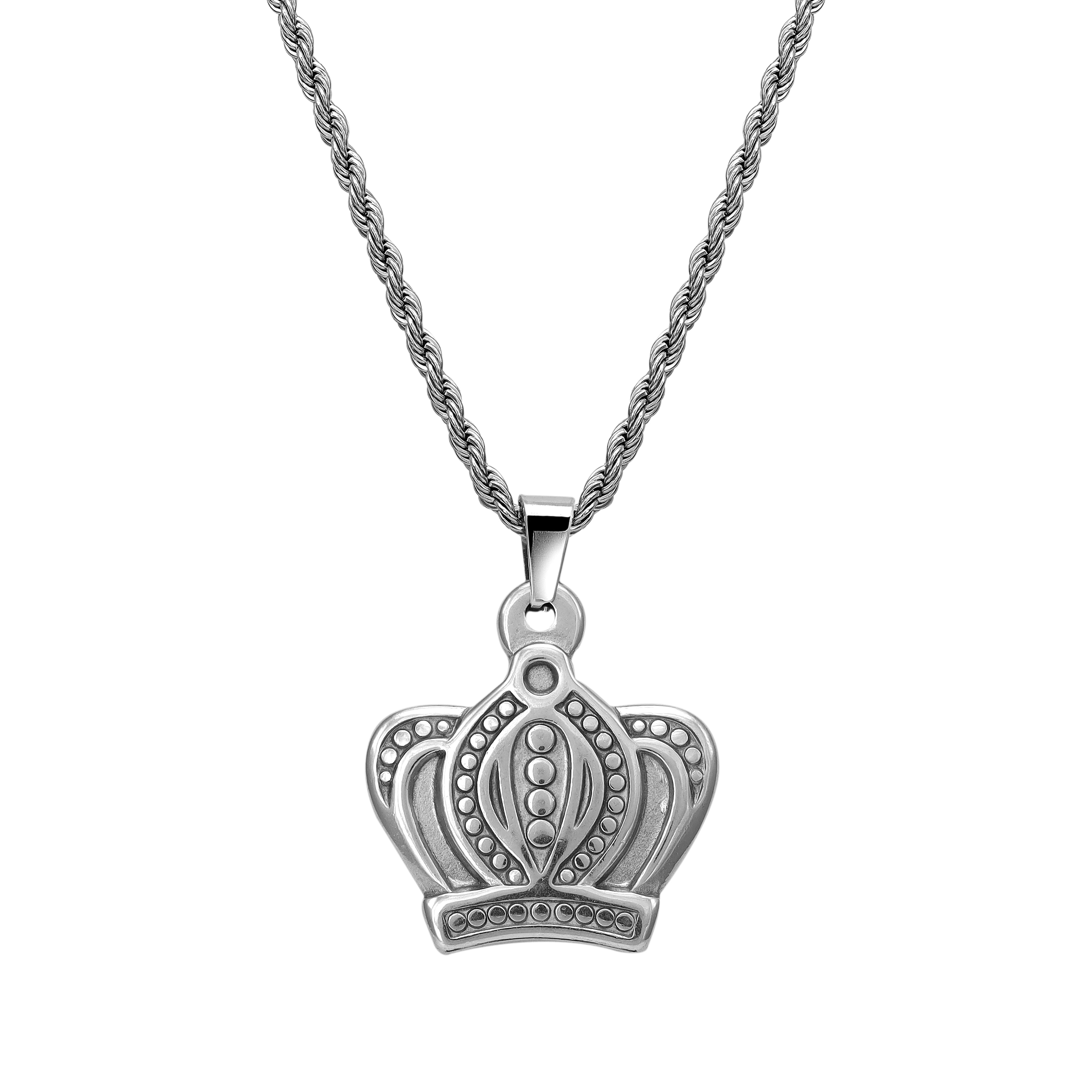 Set Kordelkette Rope Chain mit Krone Anhänger aus Edelstahl